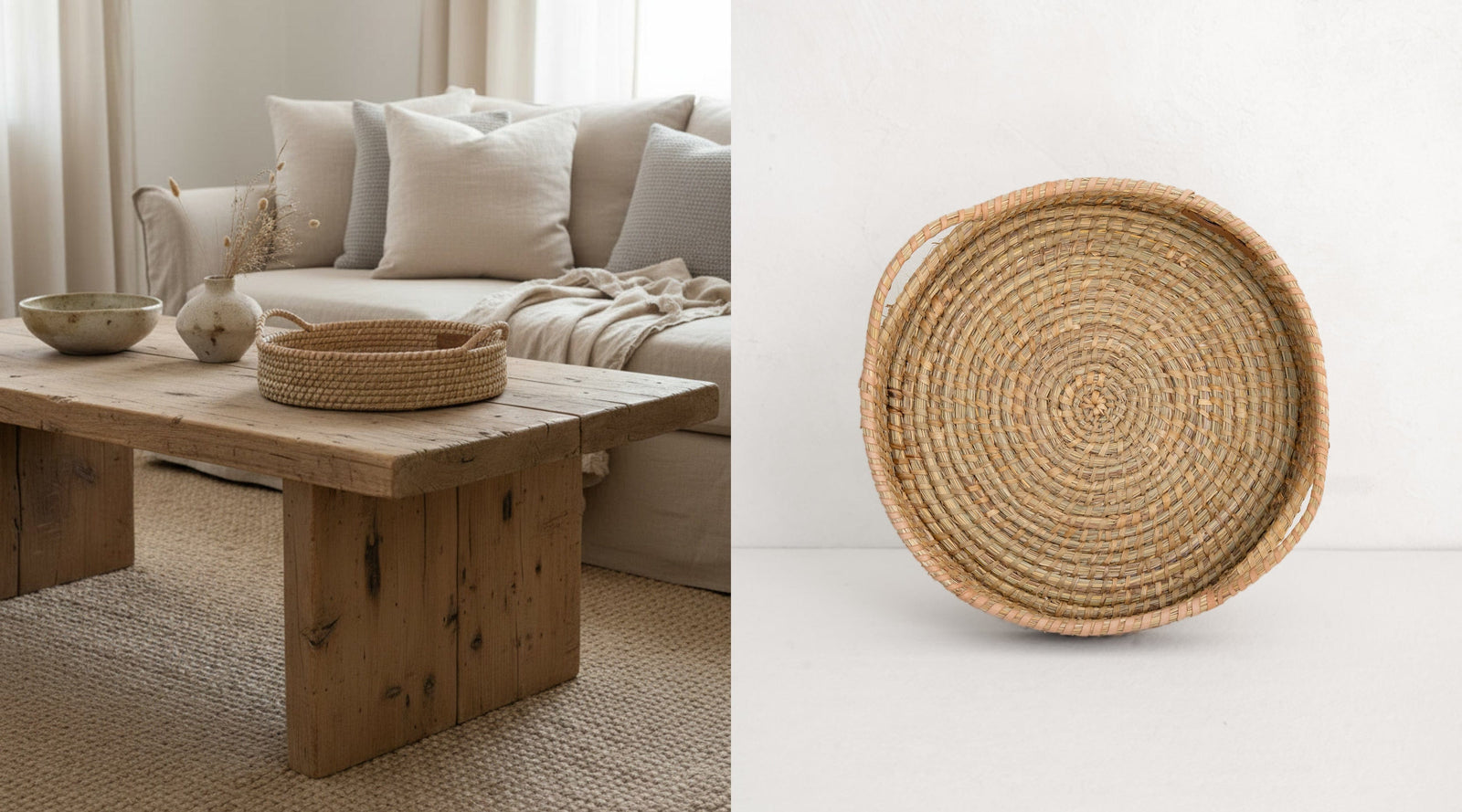 Welcome to The Dharma Door. Since 2004, we’ve created natural decor that brings warmth, texture and authenticity to your spaces. Designed in-house and handcrafted by Fair Trade artisans from the finest natural fibres, each piece reflects exceptional quality and generations of skill. With timeless design and natural tones, our collection is made to endure and effortless to style — while every purchase helps create meaningful opportunities for the talented women who make each piece.