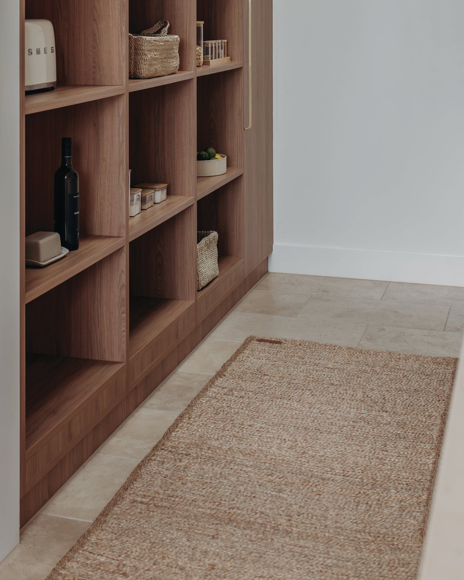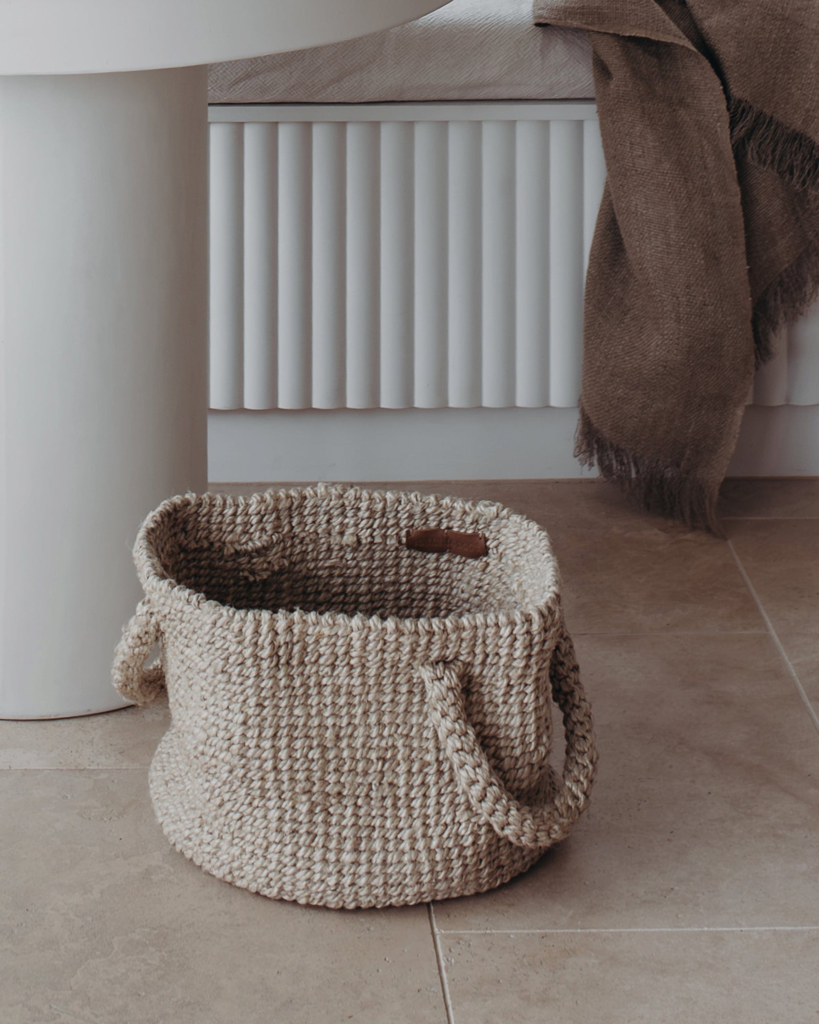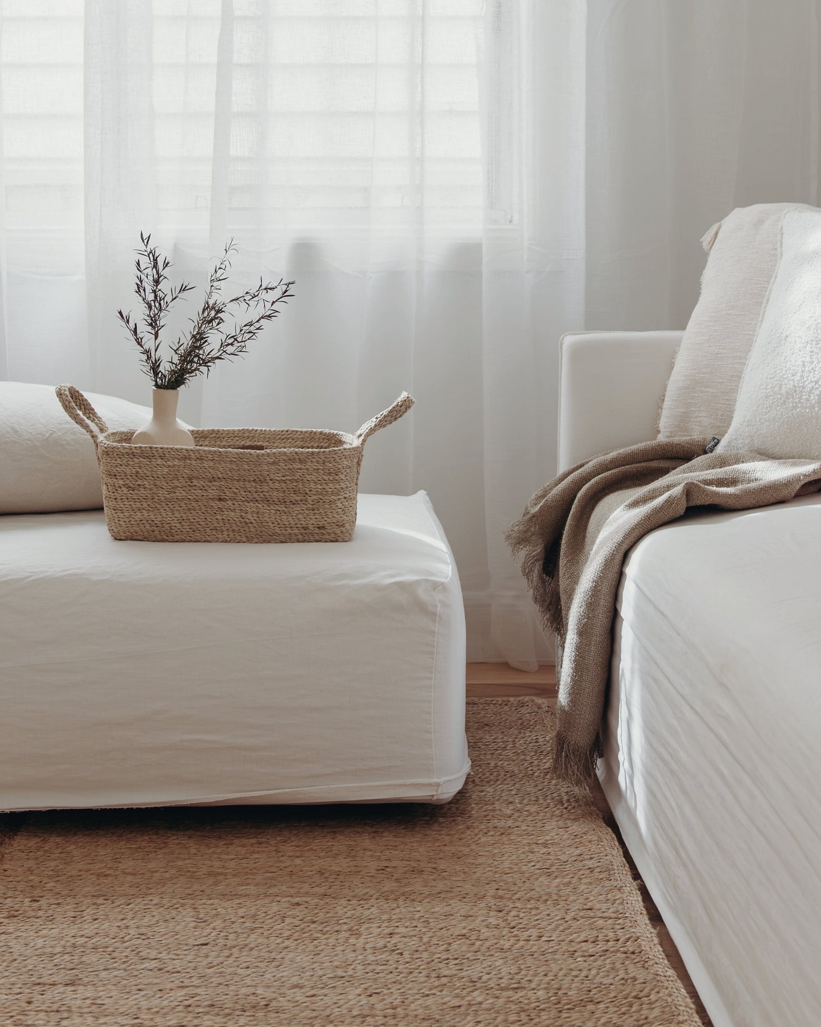 Avoiding blue and white coastal style clichés, Claire chose a fresh, modern palette of sandy blonde and cool greys, with natural stone and layers of linen. Keeping the look breezy and uncluttered, Claire has added plenty of storage to hide the holiday essentials out of sight. “I used a lot of the Dharma Door baskets in the bathroom and kitchen, where I needed to maximise the storage. I also love the Dharma Door woven shopper bags and keep them by the front door - they are great to throw your towels into before you head to the beach.”