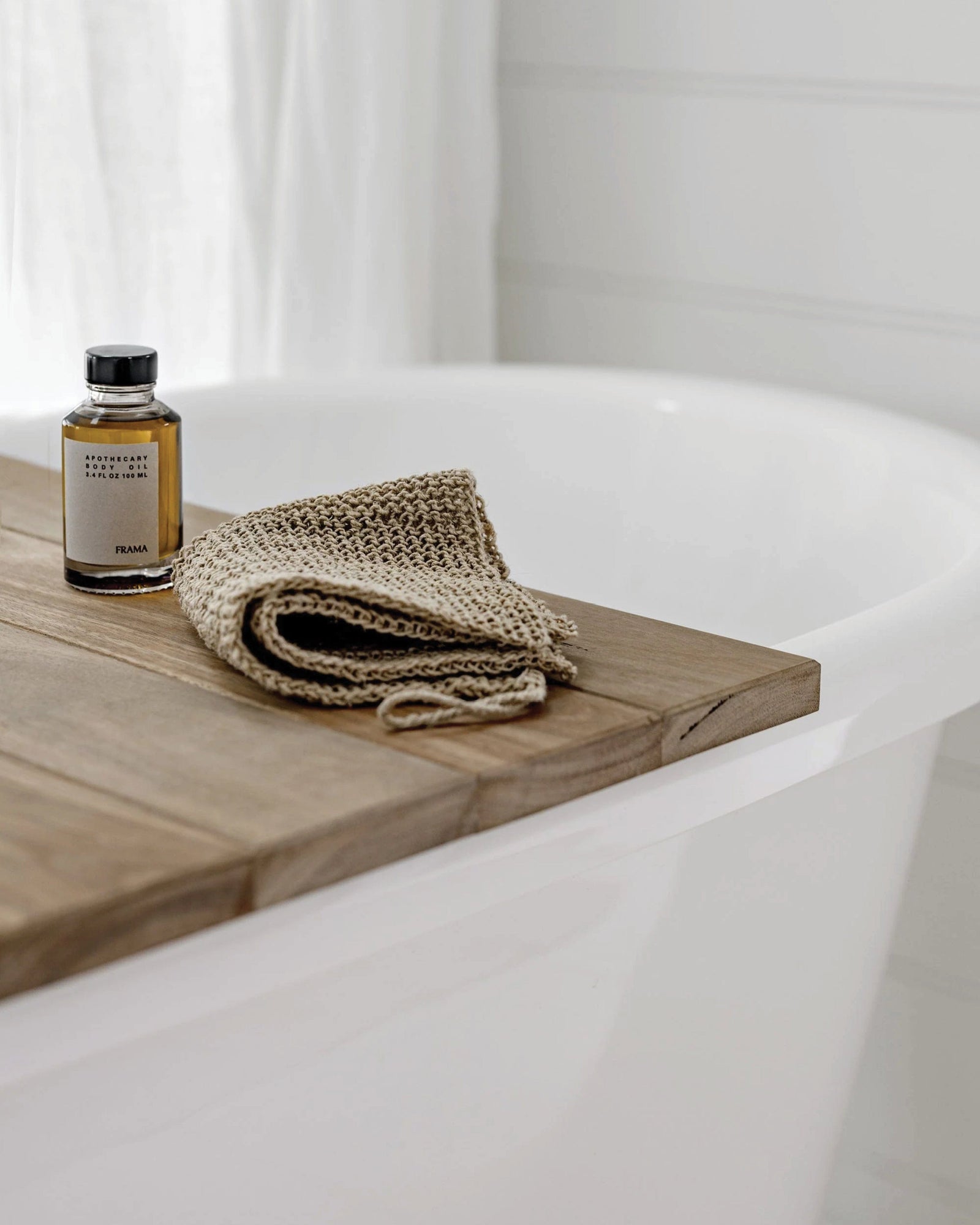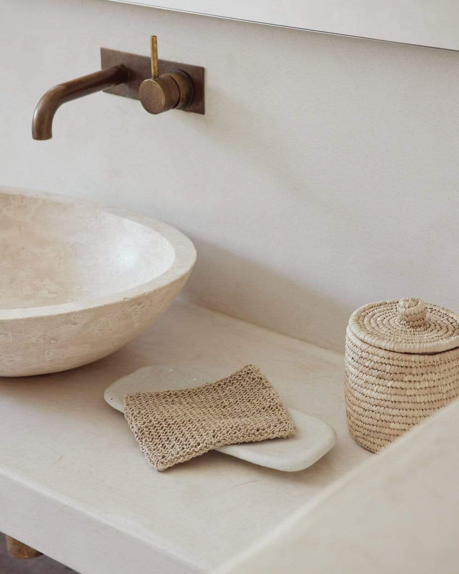 For a natural alternative, our crocheted hemp washcloths bring a rustic, handmade touch to your skincare routine. With gentle exfoliating properties, they’re as practical as they are beautiful. Layered with ceramic vessels, a sprig of foliage and natural timber elements, these woven details help create a tranquil, spa-like atmosphere in a bathroom.