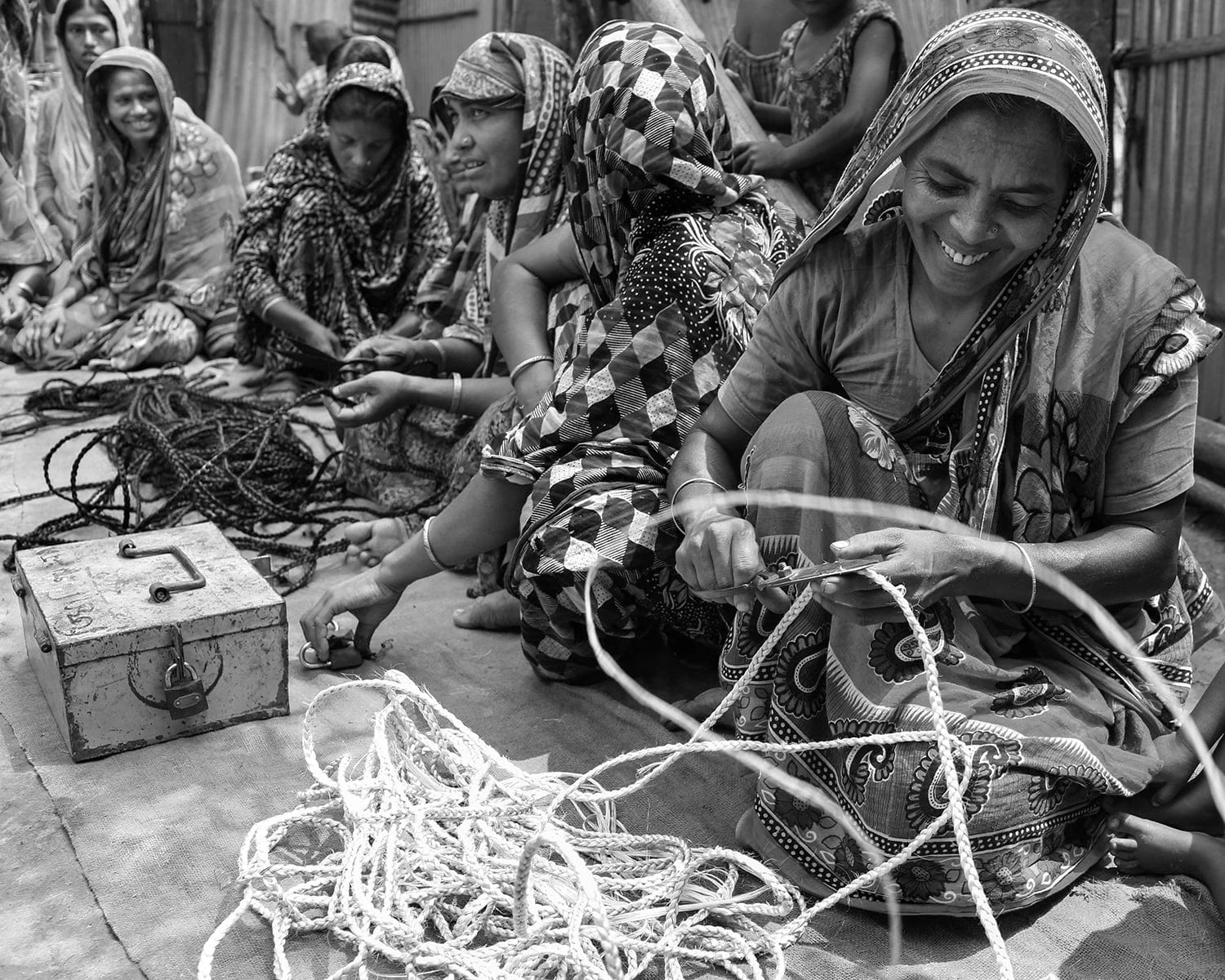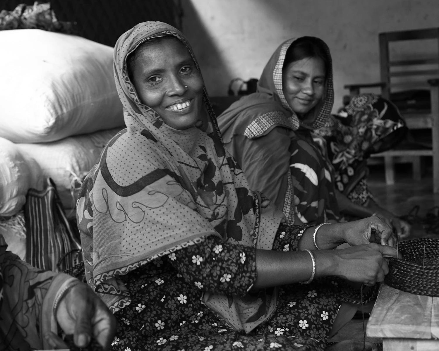 Artisans work alongside other women in shared community workspaces. Sometimes they choose to work from home, where they can also care for their family and tend to daily chores. Although highly skilled, they hail from the poorest and most disadvantaged communities in Bangladesh, so access to education, training and health care has been very limited.