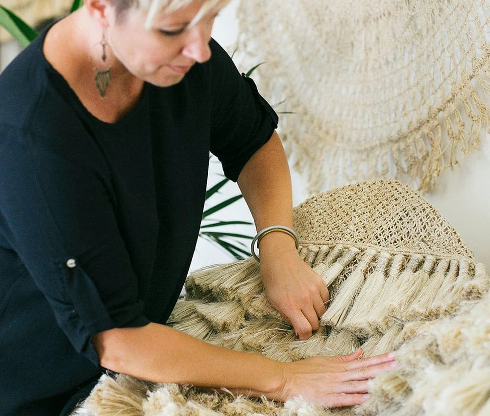 Artisans practice a range of techniques – from traditional basket and handloom weaving, to the more modern crafts of macrame and crochet. After noting the craft skills in each community, Shannon then interprets what she sees into contemporary and functional products, designing from her home studio in Byron Bay.