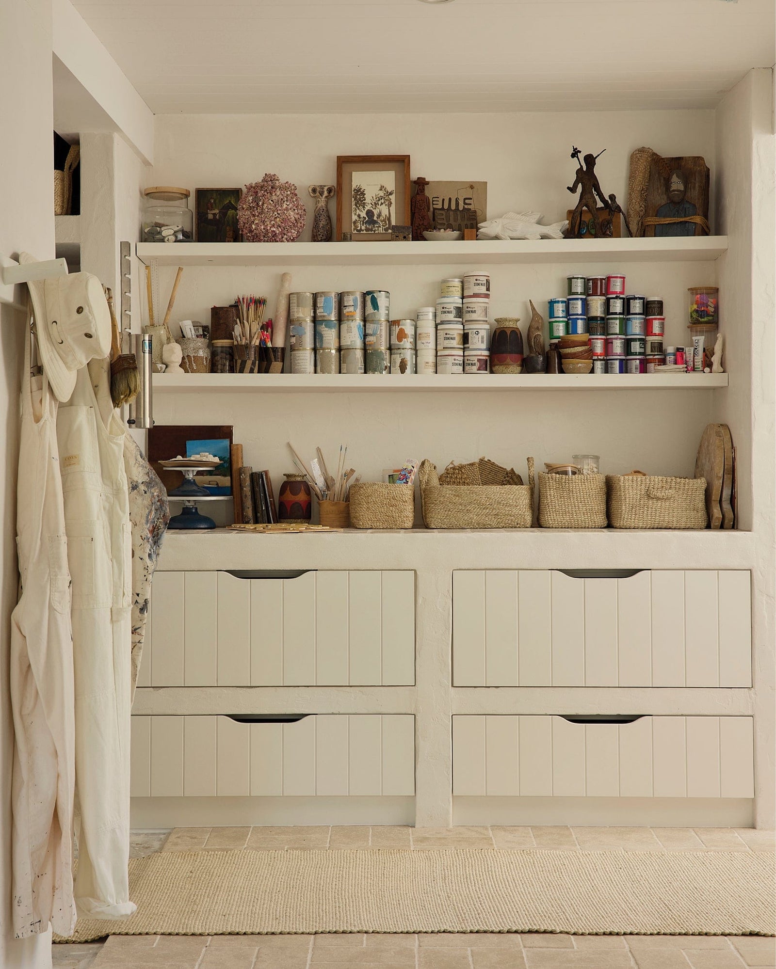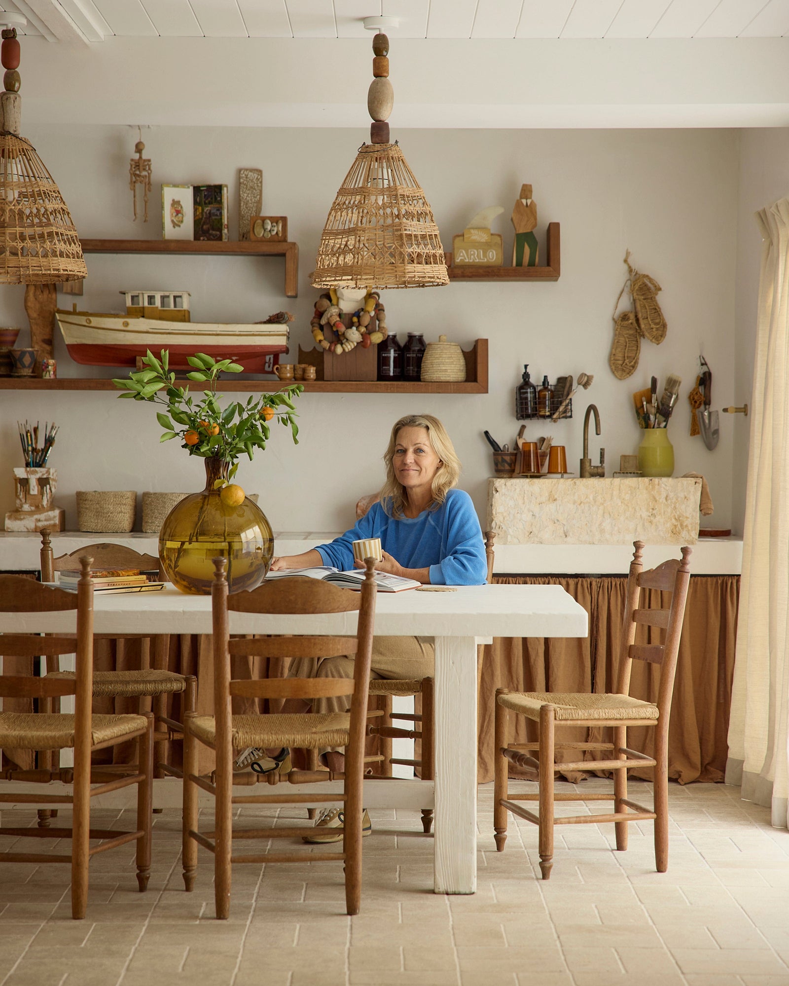 Tucked away in the coastal town of Brunswick Heads, Australia, Kimberly Amos has created a soulful, story-filled studio at The River House — a place where creativity, connection and calm come together. Best known for her work as co-founder of The Atlantic in Byron Bay, Kimberly has shaped this space as a personal retreat: a flood-resilient, free-flowing environment where making, gathering and slowing down are all part of the rhythm. Layered with meaningful objects collected from her travels, pieces made by her family, and echoes of her own creative upbringing, the studio is a reminder that the most inspiring spaces are the ones built with heart.