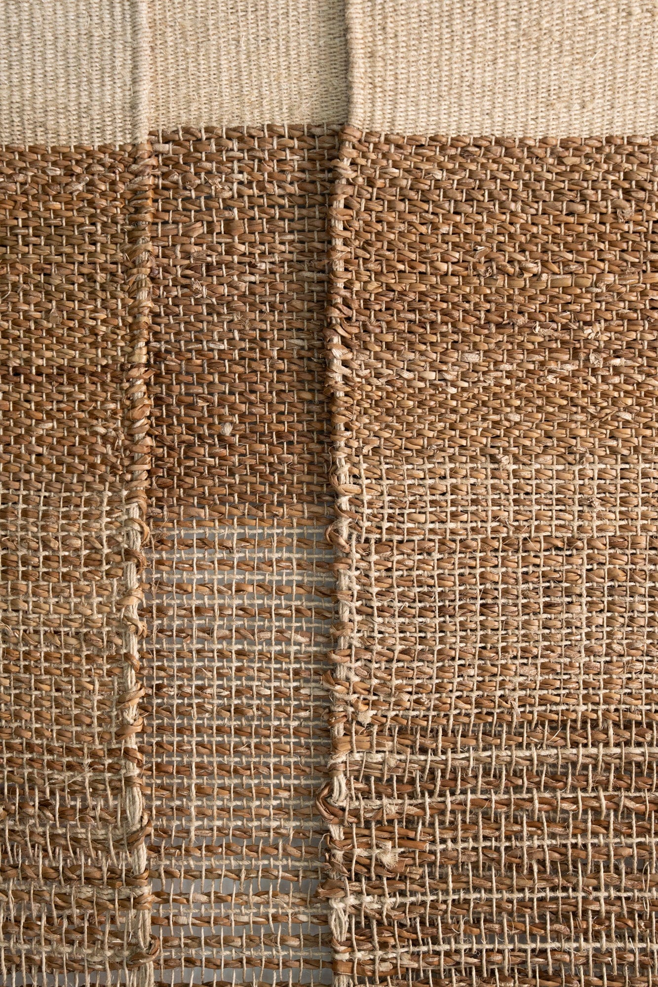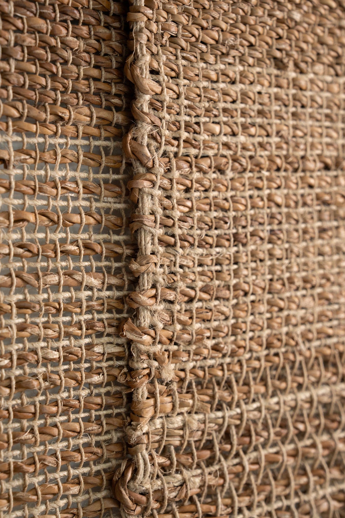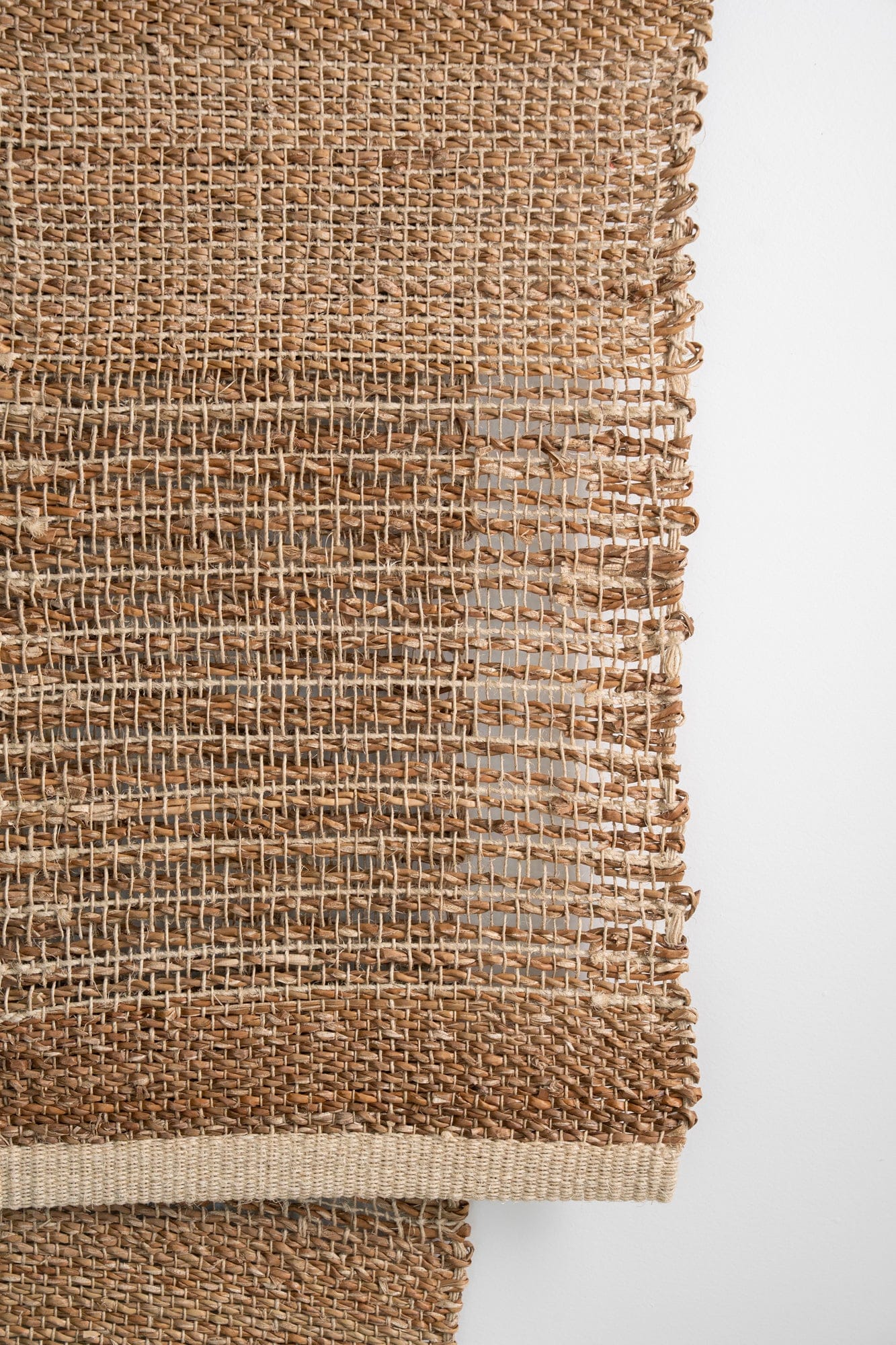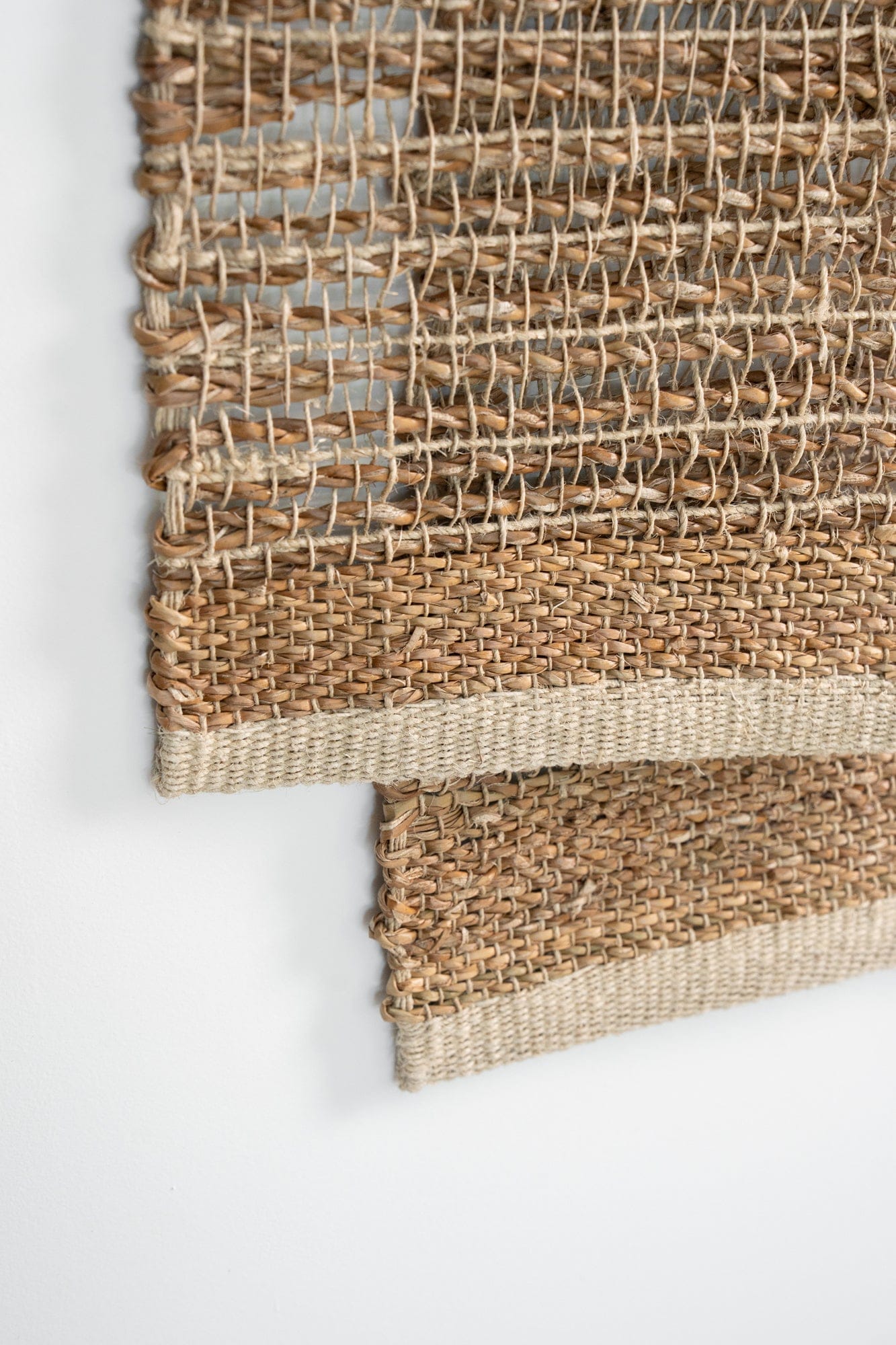 Handwoven on traditional backstrap looms from seagrass and hemp, each panel features areas of closed weave and more open, textural sections. When joined, these variations create a interplay of tone, texture and transparency, with the stitched seams and stepped hem. Supplied on a timber rod, Nadi also includes a length of hemp twine for an alternative hanging option, ideal for renters or those seeking flexibility in how the piece is displayed.